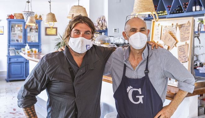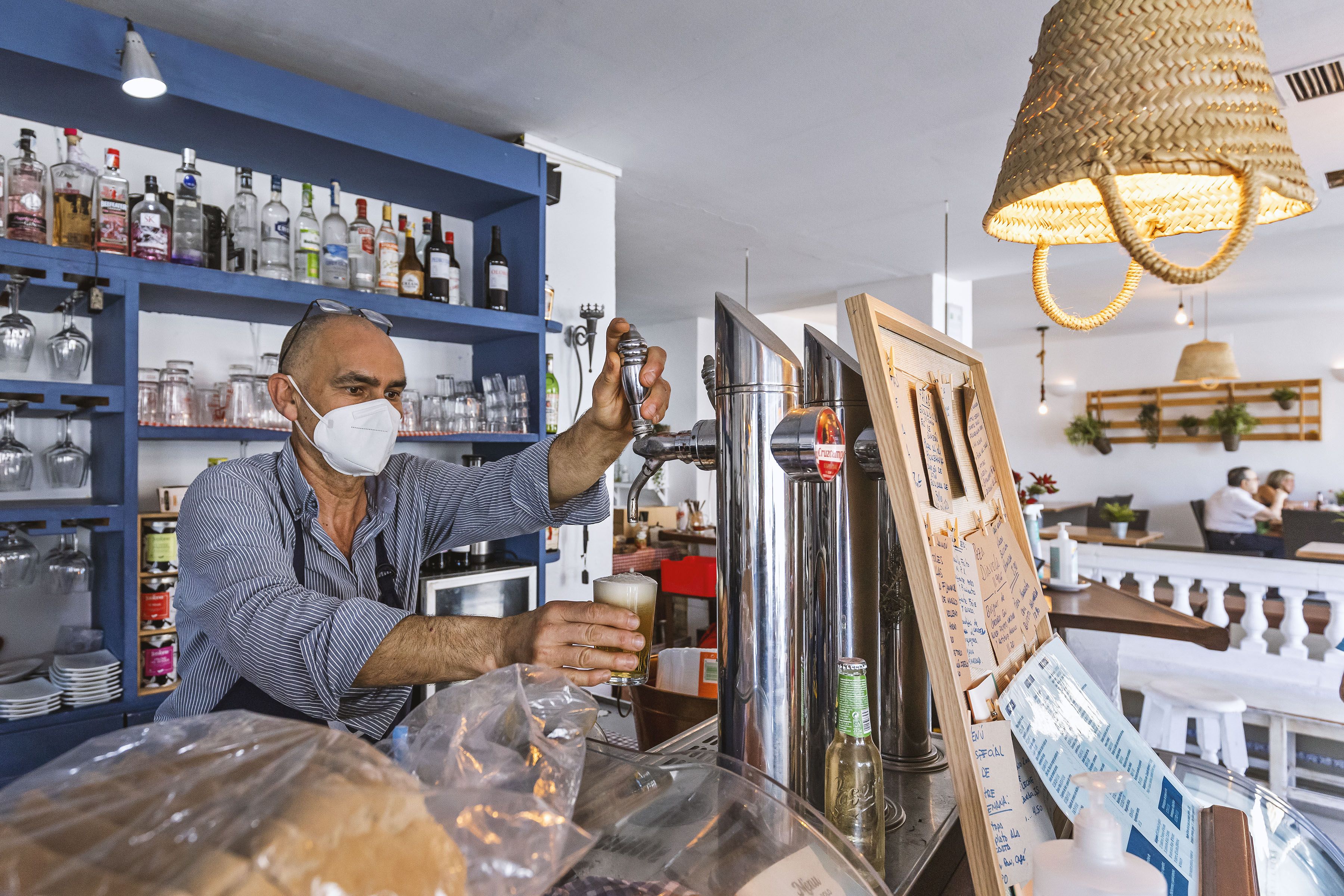 Emilio Cueto forma parte de la tercera generación de hosteleros de su familia. Durante su vida laboral no conoce otra cosa. Tras sus inicios ayudando en el negocio y tras pasar varios veranos en la cocina de la Granja, trabajó en un chiringuito de su primo, el conocido hostelero gaditano Raúl Cueto, luego cursó un FP de Electricidad y con apenas 23 años abrió su primer bar, el Fénix, "que fue un éxito". "Mis padres me enseñaron todo lo que sabían", confiesa Emilio, que lleva las riendas de la Granja Santa Ana desde hace casi 15 años. "Aquí seguimos, cuidando la esencia", comenta.