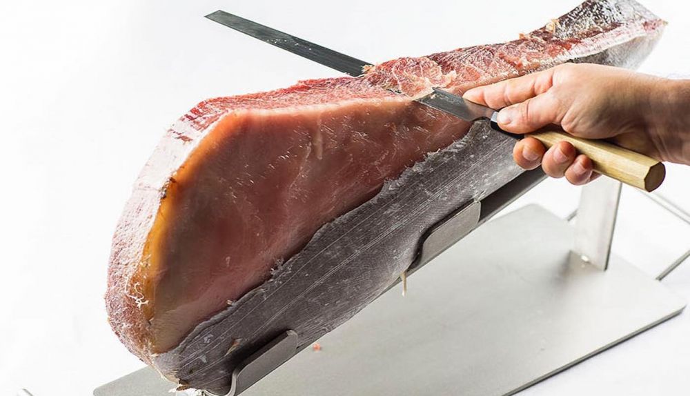 Ángel León, el chef del mar, ha hablando en una ponencia en Madrid Fusión sobre el jamón de mar, poniendo así en valor las barrigas de los atunes de almadraba. “El jamón, en el que se ha trabajado mucho sobre todo en la curación para conseguir la maduración perfecta, nos da la posibilidad de completar el trabajo realizado en Aponiente con los embutidos marinos”, explicaba. El chef ha completado la ponencia elaborando una tapa con base de torta elaborada con el arroz marino, sobre la que ha dispuesto varias lascas de jamón marino cortado a cuchillo y un poco de miel de mar. “Una tapa de mar. Poco más que contar”. “Queda todo por escribir aún sobre el mar. Tras 15 años, seguimos teniendo mucha ilusión y se avecinan descubrimientos importantes. Es el momento de empezar a soñar con huertos en el mar”.