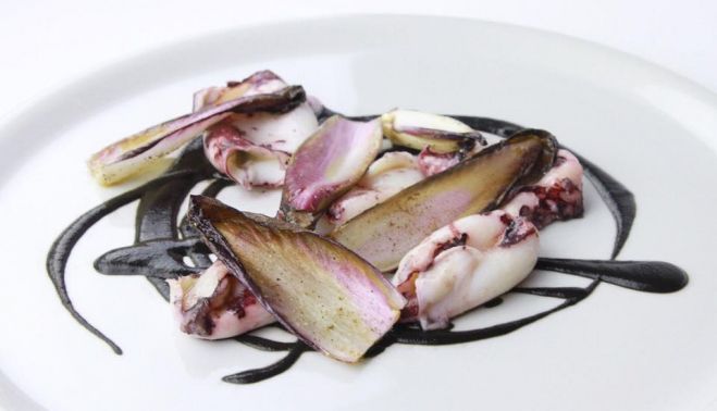 Chipirones confitados en su tinta, manzanilla y endivias es el plato con el que ha sido premiado el chef Javier Muñoz, frente a otros 20 establecimientos de las provincias de Cádiz, Huelva, Sevilla y Córdoba.