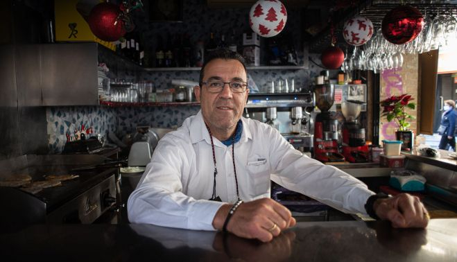 Jesús todos los días está listo a las 5.30 h de la mañana para atender a “las personas mayores que vienen dando guerra” y a todos los vendedores y comerciantes de la zona. “Lo que más me gusta es que trabajo para mí y que el cliente que tengo es de confianza y muy amable. Lo mejor también es que esto es un negocio familiar, aquí estoy acompañado de mi mujer y de mi suegra”.