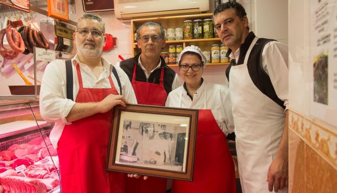 Los hermanos Jiménez llevan en el número 3 de la calle Francos desde 1986, pero su padre regentaba al mismo tiempo el negocio en el lugar original que su bisabuelo estableció en la calle Guadalete y un puesto en el Mercado de Abastos que por aquel entonces también llevaban. "Hay una foto preciosa de nuestro padre en la Plaza", comenta Manuel, que no puede cuantificar la de años que lleva la familia Jiménez dedicada a este mundo. "Mi bisabuelo carnicero, mi abuelo y mi padre también; ahora somos nosotros, los tres hermanos".
