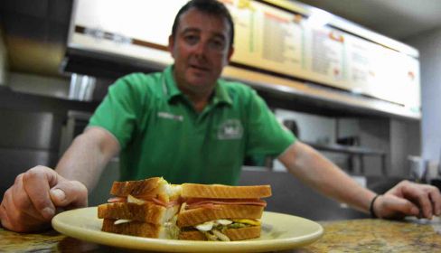 “Una de las cosas que más le gusta a la gente es que la comida siempre sabe igual. Somos de la política de que si una cosa funciona, para qué cambiarla”, indica el encargado mientras elabora artesanalmente las pizzas —otra de las exquisiteces del restaurante—. “Es algo que no es fácil de conseguir, pero los ingredientes especiales de los sándwich club y de la salsa de tomate de las pizzas no te la vamos a dar”, bromea. Definen el estilo de su restaurante como “de comida rápida, aunque elaborada, porque los ingredientes son frescos y de primera calidad”.