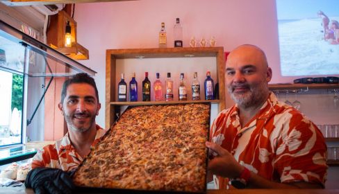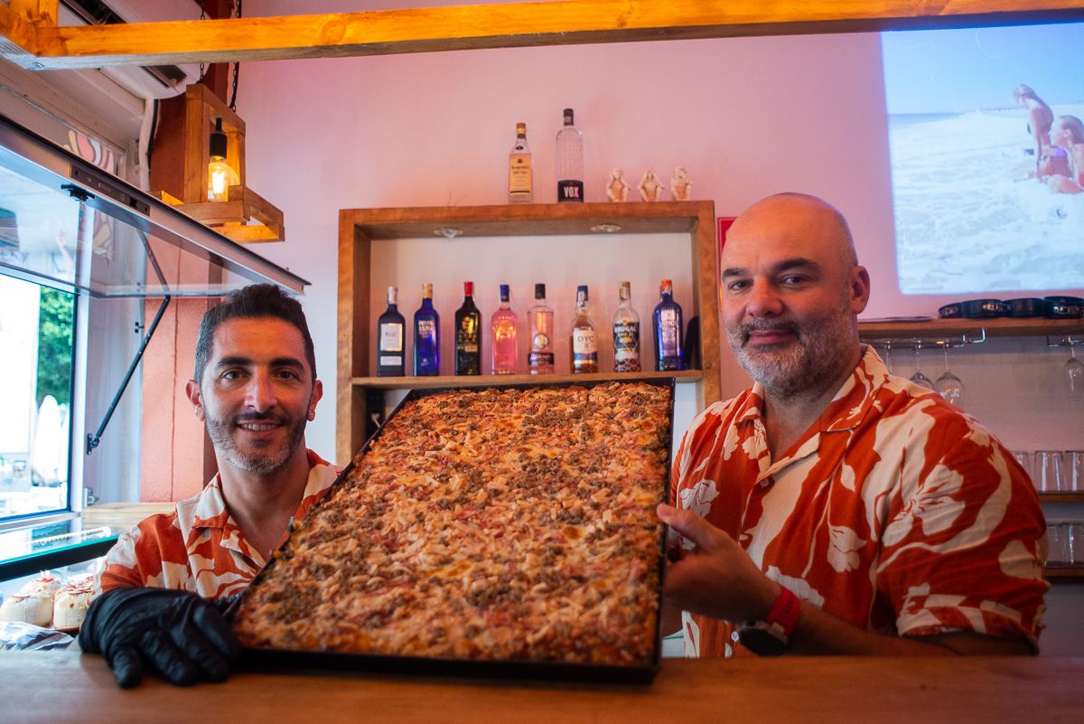 Entre la oferta del local se encuentran porciones de pizza, pizzas enteras, pizzas a domicilio e incluso la party pizza, que es una pizza gigante pensada para eventos de amigos y familias. "Imagina que vas a ver un partido de fútbol con tus colegas, te la llevas, cortada o entera y coméis todos. Ese es el concepto que estabamos buscando", dice. La estupenda acogida que está teniendo el negocio tras un mes de apertura también se debe a la innovación, con la que han diseñado varias pizzas inéditas y con sello propio.
