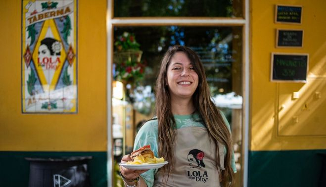 Un cante jondo o unas palmas por soleá ambientan una esquina de la Alameda de Hércules de Sevilla a la que el folclore se le sale por los poros. Raro es el día en el que un grupo de amigos no se hace una foto con los azulejos pintados que adornan Lola Por Dios, un nombre que lleva ocho años resonando en la gastronomía sevillana. “Son emblemáticos, la peña se hace fotos”, comenta José Manuel Leirós, mente que en 2013 maquinó este negocio “un poco macarra” con aire desenfadado. Una taberna de los pies a la cabeza que el hostelero madrileño-de familia gallego sevillana- montó inicialmente en la calle Conde de Torrejón.