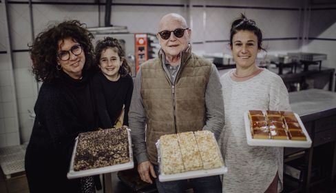 La tarta perdura después de tres generaciones que han llegado a trabajar juntas en el obrador. El postre pasa de padres a hijos llevando por bandera la originalidad. Todos los miembros de la familia guardan la receta de la ‘imperial’. Mari Ángeles se la aprendió “corrigiéndole a mi abuelo” cuando montaba el dulce. Su compañera Fani y ella, con 19 años, veían a Pepe Mesa montar las tartas con sus manos. “Para que no se le cayera la mantequilla y mi padre no le riñera después nosotras se la poníamos derechita y la metíamos en la nevera”, cuenta la gerente que cuando terminó de estudiar se hizo cargo de la producción, en la que también se implica Rocío, su hermana. Desde pequeñas ya participaba en la elaboración de los postres. “Venía en vacaciones, había que partir once cajas de huevos, si no, no me podía ir a la playa”, exclama Mari ángeles riendo.