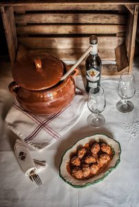 Para el plato principal de este delicioso menú andalusí, Arqueochef nos acerca a la judería jerezana. Los sefardíes, que abandonaron la ciudad antes de la forzosa expulsión de los Reyes Católicos, dejaron en el imaginario colectivo castellano una receta como esta: las albóndigas de Sefarad. Para elaborarla necesitamos 750 gramos de carne picada de ternera —o mejor y si podemos, la picamos en casa—, tres ajos, un huevo, pan rallado, medio vaso de aceite de oliva, una cebolla mediana, tres o cuatro ñoras trituradas, una cucharada de comino molido, un cuarto de litro de caldo de carne, sal y un chorreón de vino fino de Jerez.