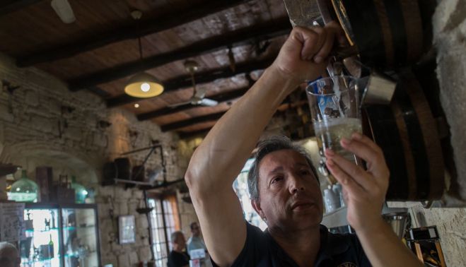 Dani prepara un ajo caliente en la Abacería Cruz Vieja. FOTO: MANU GARCÍA.