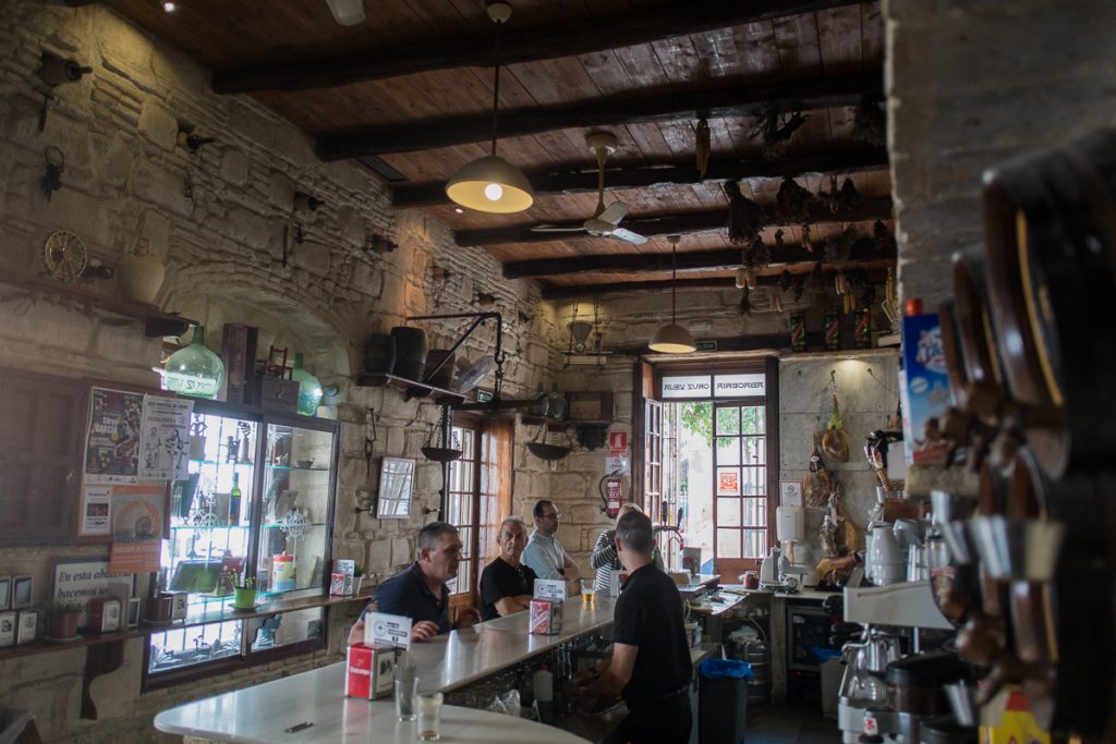 La reforma del local, que tuvo lugar en 2006, la hizo el que fuera hasta hace un año su socio, Fernando Íñigo, que se fijó en el concepto de las abacerías convertidas en negocios de hostelería. El antiguo almacén se transformó. "Fernando conservó todas las maderas, pero antes todo era liso, picó, se puso piedra natural reutilizada y se colocó este suelo". Una reforma "tradicional" que también trascendió al ámbito decorativo. Sobre unas estanterías, una serie de juguetes antiguos, entre los que se encuentran un pequeño carrusel y hasta cajas de música con luces incluidas, que se ponen en marcha de forma mágica. "Mira cómo gira", dice. Sobre sus pies, la tinaja también tiene su truco.