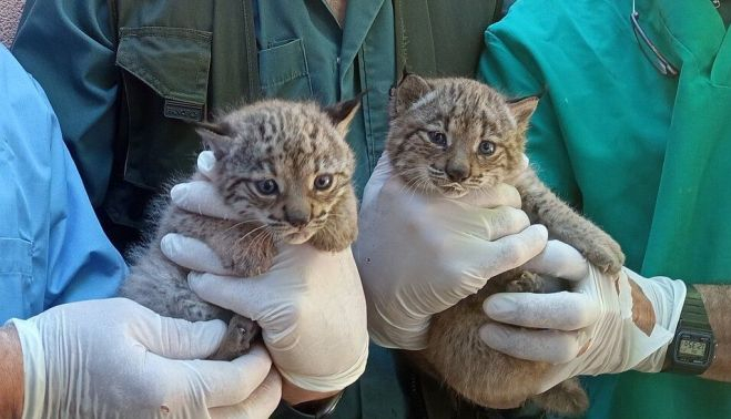 Las dos hembras de lince ibérico nacidas en el Zoobotánico de Jerez pasan su primer chequeo sin mayores problemas. El equipo del parque ha comprobado que los cachorros, nacidos el pasado 27 de marzo, están en perfecto estado. Dentro de un mes se les realizará otro chequeo.