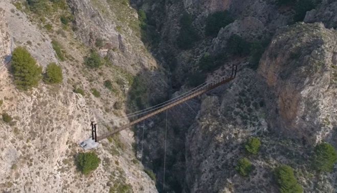 La Gran Senda de Málaga abre el próximo 26 de octubre una nueva pasarela que se constituye como uno de los tres puentes colgantes más grandes de España en entornos naturales. La Dipuntación ha invertido 600.000 euros para la creación de esta estructura adaptada para todo tipo de usuarios que permitirá unir los municipios de Sedella y Canillas de Aceituno salvando el desfiladero de El Saltillo, sobre el río Almanchares.