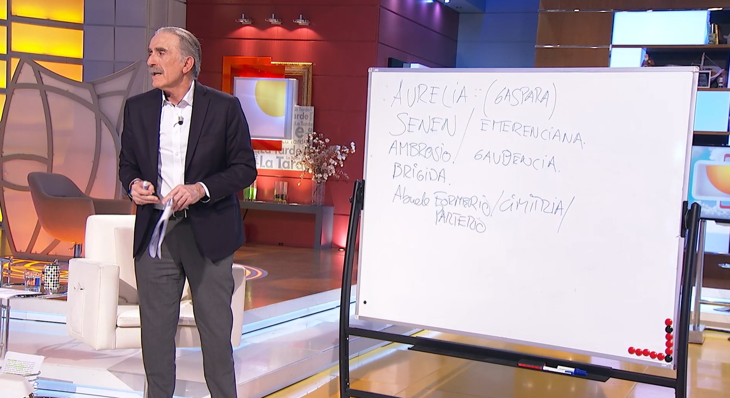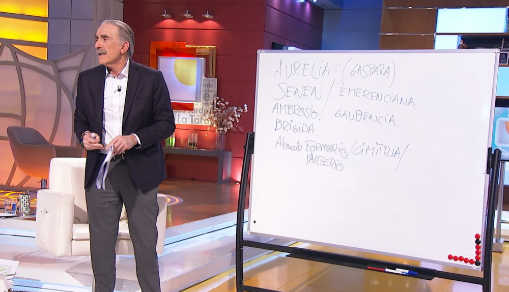 "Mi padre se llamaba Senén y mi madre Emerenciana". El rostro del presentador se iba convirtiendo en un poema, pero faltaba mucho más. Otras mujeres de la familia se llamaban Gaudencia o Brígida. "Es que Brígida ya nos parece normal", bromeaba Juan y Medio. El abuelo era Formerio, sus hermanas Simitria y Perpetua y el hermano Parterio. "No habéis celebrado un santo en vuestra puñetera vida", dijo con guasa el presentador. Una guasa con la que continuó Aurelia. "No podemos, si no lo encontramos en el calendario".