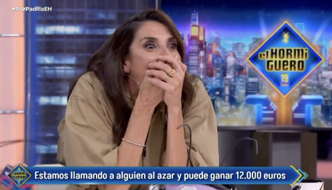De lo más surrealista ha sido el momento que ha vivido Paz Padilla durante su visita a El Hormiguero. Como cada noche, desde el programa de Pablo Motos se ha llamado a un número de teléfono al azar para regalar una tarjeta valorada en 12.000 euros.