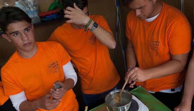 No son todavía expertos en la materia, pero ya han comenzado a hacer sus primeros pinitos. La tabla periódica les está sirviendo como referencia principal para llevar a cabo algunos de sus experimentos o usan la levadura para crear nuevos sabores con el pan. Ataviados con batas blancas o camisetas naranjas, no han llegado a conocer aquel famoso programa de química llamado El Mundo de Beckman pero se atreven a crear ondas de sonido a base de música electrónica. La cuarta edición de la Feria de la Ciencia en la Calle ha regresado a la ciudad cargada con todavía más ilusión que en ediciones anteriores. Organizada por el Centro del Profesorado de Jerez (CEP) en colaboración con el Ayuntamiento y la Fundación Española para la Ciencia, entre otras instituciones y patrocinadores, el evento educativo se ha celebrado estos días en la plaza del Arenal con unos 2.500 escolares presentando sus proyectos científicos.
