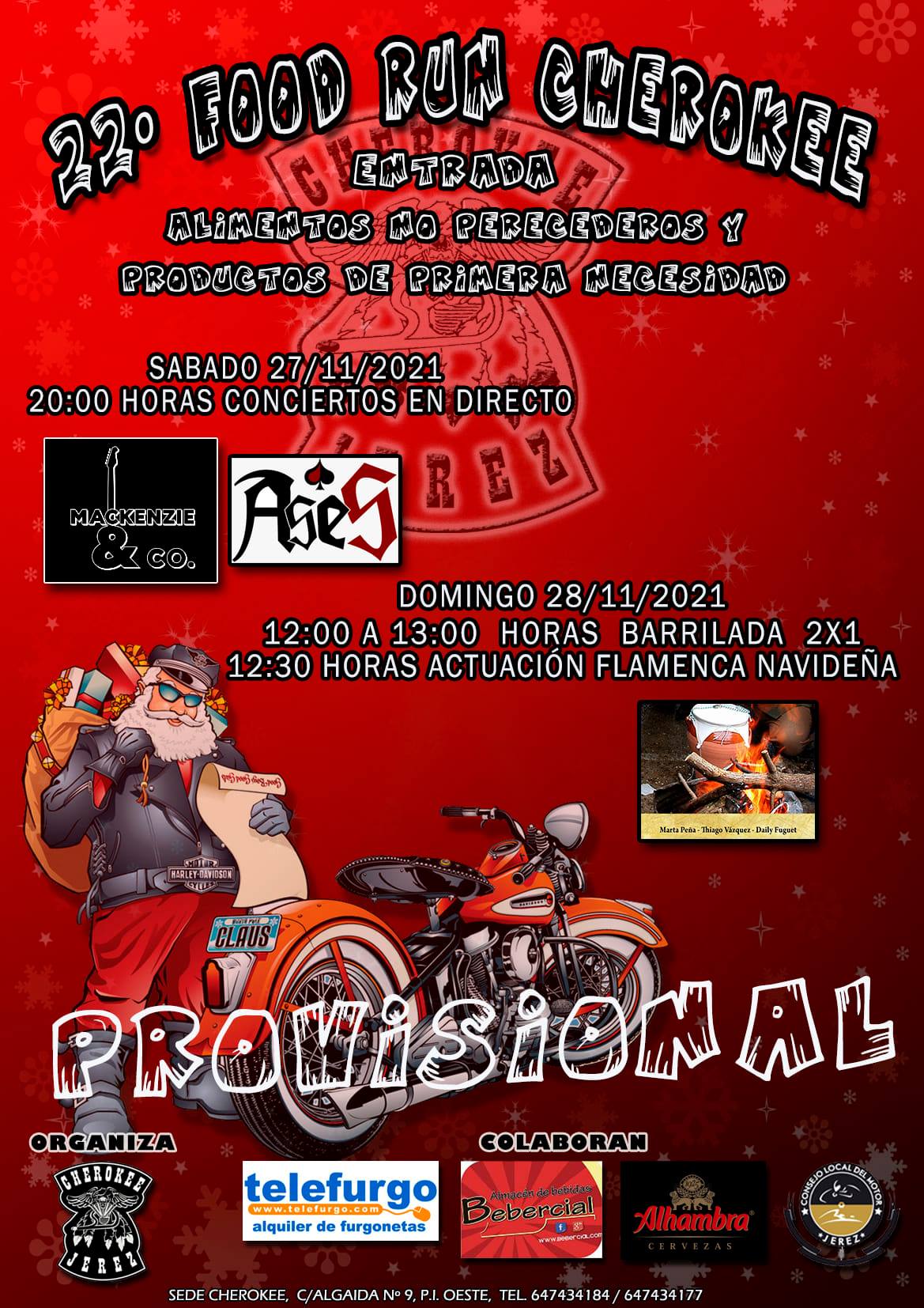 Llega la 22º edición de la fiesta benéfica Food Run que organiza el club motero Cherokee de Jerez. Con muchas ganas de volver a celebrarlo, la cita solidaria tendrá lugar en la sede, calle Algaida, nº9 y se desarrollará durante todo el fin de semana.