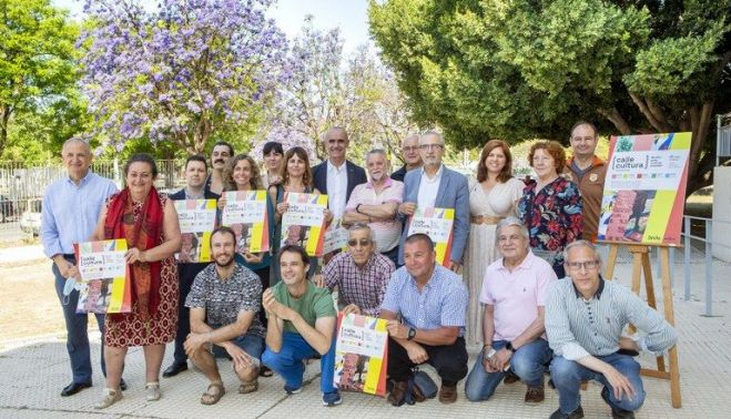 En esta ocasión, este proyecto impulsado por el Instituto de la Cultura y las Artes de Sevilla (ICAS) del Ayuntamiento de Sevilla se ha realizado en coordinación con el Distrito Cerro-Amate y las aportaciones y complicidades de los siguientes colectivos sociales y vecinales, entre ellos, la Federación Entre Lindes, la asociación vecinal Su Eminencia, la asociación vecinal Los 330 de Federico García Lorca, la Plataforma Yo Lucho por mi Barrio, la asociación vecinal La Negrilla, el CEIP Adriano del Valle, la Asociación Cultural Cabalgata de Su Eminencia, la Fundación Mornese, la asociación vecinal Guadaíra, la Asociación de Mujeres Carmen Vendrell, La Casa de Todos y la Asociación rompe tus cadenas. El centro cívico Su Eminencia ha acogido hoy la presentación, a la que ha asistido del alcalde de Sevilla, Antonio Muñoz, junto con el delegado del distrito Cerro-Amate, Juan Manuel Flores, representantes de asociaciones vecinales y entidades de la zona y artistas que participan en esta edición de Calle Cultura.