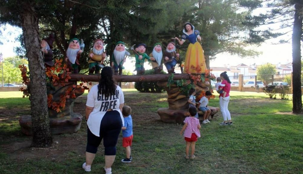 Un viaje por el mundo de los cuentos. El parque de El Almendral de Cartaya, un pueblo de Huelva, se ha convertido en un espacio verde de lo más original. Medio centenar de figuras de los protagonistas de la literatura se han instalado en este lugar lleno de fantasia del que nadie se va sin una fotografía de recuerdo.