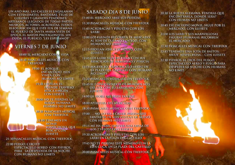 Desde este viernes 2 y durante todo el fin de semana, la Plaza del Castillo y su entorno nos harán viajar al pasado, trasladando a portuenses y visitantes al medievo y convirtiendo el centro de El Puerto en un gran mercado medieval lleno de variedad y de actividad, donde niños y mayores podrán disfrutar de lo lindo con una intensa programación, en una ciudad engalanada para la ocasión, que se alargará desde el viernes 3 hasta el domingo 5 de junio.