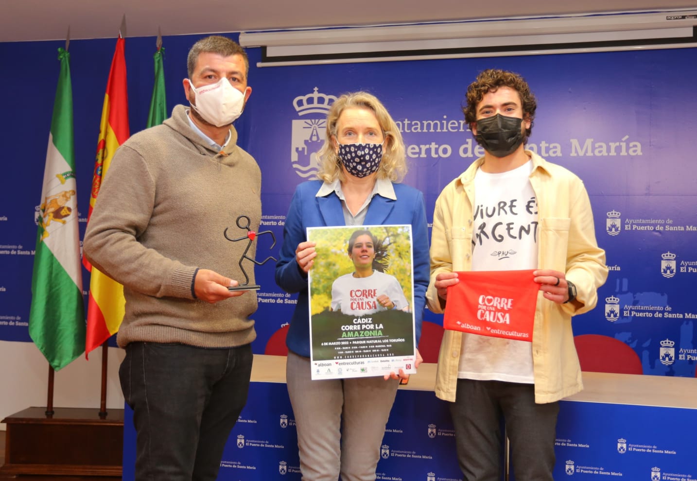 La teniente de alcalde de Deportes, Lola Campos, ha presentado el cartel de Corre por una causa, la carrera solidaria en defensa de la Amazonía que coorganizan las ONG Entreculturas y Alboan y que tendrá lugar el próximo domingo, 6 de marzo, en el Parque Metropolitano de Los Toruños. Campos, que ha estado acompañada en la presentación por el responsable de la prueba, Juan Pedro García, y el miembro del comité organizador, Álvaro García, ha señalado que la prueba consta de seis modalidades, de forma que a las 10.00 horas comenzarán la de 9 kilómetros, 5 kilómetros y 5 kilómetros marcha, mientras que a las 12.00 horas se desarrollarán, ya en modalidad infantil, las de 1 kilómetro, 350 metros y 100 metros.