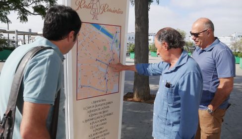 Para facilitar el seguimiento de la Ruta Romántica, se ha instalado un monolito en la Plaza de Andalucía, en el que además de algunas citas sobre este movimiento artístico, se ofrece un plano de la ciudad con el trazado propuesto. Asi se facilitará al usuario no solo un punto de partida, de encuentro, sino también una visión general de la Ruta para seguir cada uno de los diez puntos, aunque cada uno de ellos pueda disfrutarlo también de forma aislada.