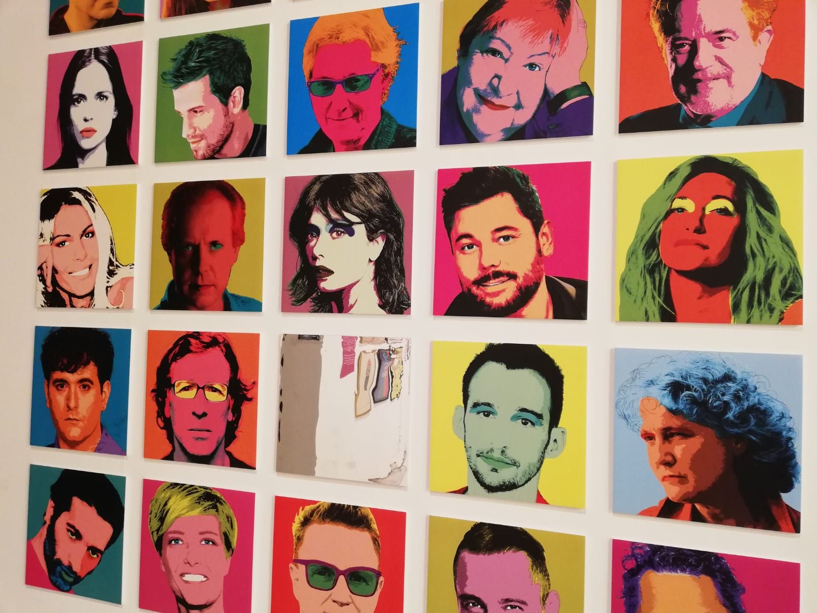 Pinturas, dibujos, fotografías, grabados, carteles, vídeos, vestidos, libros, discos, revistas, perfumes, catálogos de moda, esculturas, batas de cola, cerámica, etc. son algunos de los objetos que pueden verse en la exposición, a través de los cuales están representados figuras como Pedro Almodóvar, Pier Paolo Pasolini, Federico García Lorca, Bibiana Fernández, David Delfín, Carmen Laforet, Gloria Fuertes, Raphael, Vanesa Martín o Israel Galván, entre muchos otros y otras.