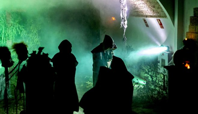 La festividad de Tosantos se funde con la noche más terrorífica del año en Cádiz. En la capital es tradición decorar los mercados con escenas de Semana Santa o de personajes conocidos mientras las brujas merodean por las calles.