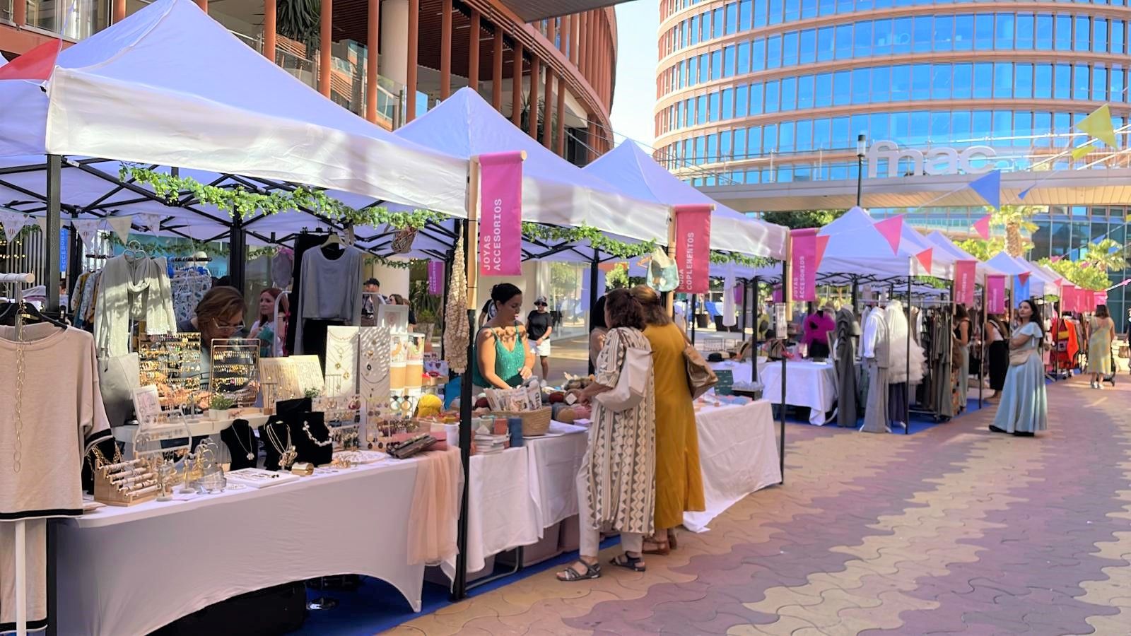 En la oferta de moda femenina destacan Alondra Brand, Soraya Moreno, Lunaires, Hamba Shop y Mayller en la colección de fiesta, así como Estudio 8 Vintage con una selección de moda y complementos vintage. Además, marcas como Majia Tienda y By little Indian exhibirán su catálogo de moda y complementos infantiles cosidos a mano, mientras que Ponte Color presentará vestidos de seda importados desde India por su fundador, y Alcazar design mostrará moda flamenca para el día a día.