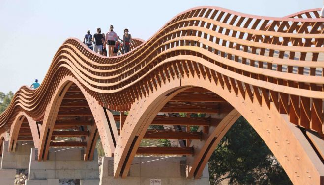 Como curiosidad, para levantar este puente, se utilizaron más de doscientas toneladas de madera de pino silvestre procedente de Escandinavia y cerca de 15 toneladas de acero inoxidable apto para entornos marinos.