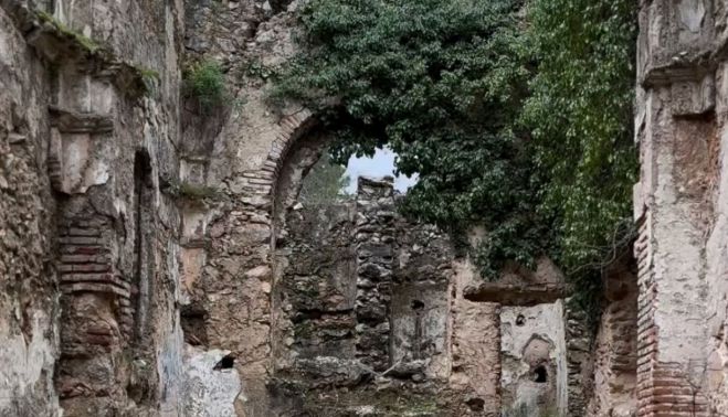 Una ruta a través de un camino empedrado en el que se celebraba el Vía Crucis –a lo largo del recorrido se pueden contemplar los restos de los pedestales y plintos en los que se depositaba la cruz y tenían lugar las diferentes estaciones de penitencia– en tiempos pasados permite llegar hasta lo que queda del campanario y de la ermita, cubierta de enredaderas, en un entorno que transmite calma y paz a los ruteros.