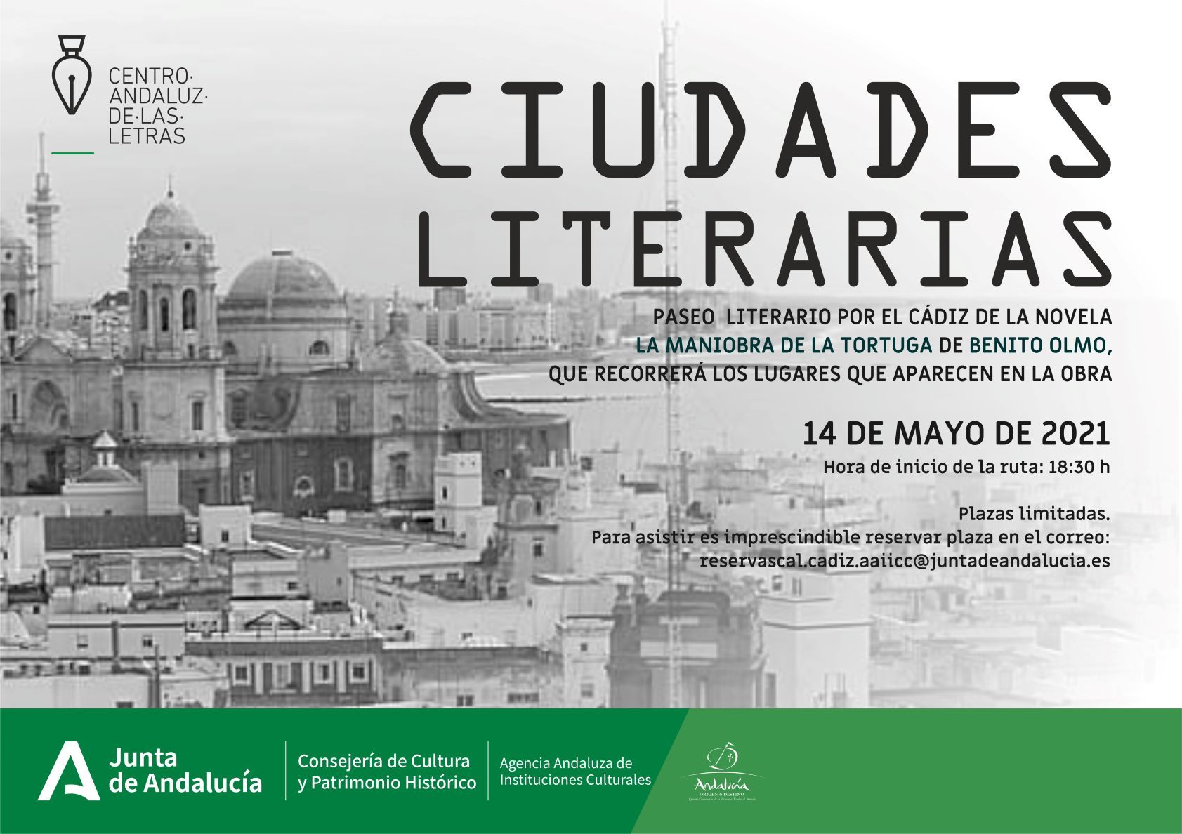 Debido a la situación de la pandemia causada por el Covid-19, el aforo de las actividades es reducido y será requisito indispensable reservar previamente la asistencia en el correo electrónico: reservascal.cadiz.aaiicc@juntadeandalucia.es