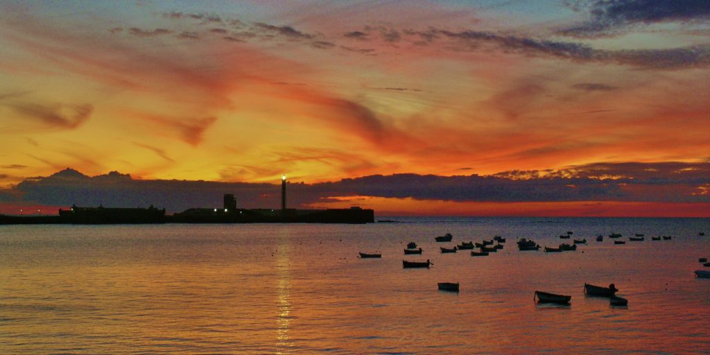 Catalogada como una de las playas más famosas de Cádiz, La Caleta es una visita obligada para los viajeros por su espectacular atarceder repleto de colores anaranjados y amarillos, coronada por pequeños veleros y arropada por el balneario de La Palma y el Castillo de San Sebastián y Santa Catalina.En definitiva, una estampa dificil de resistirse para fotografíar.
