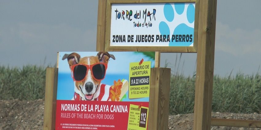 Cartel de la playa para perros en Torre del Mar, Málaga.