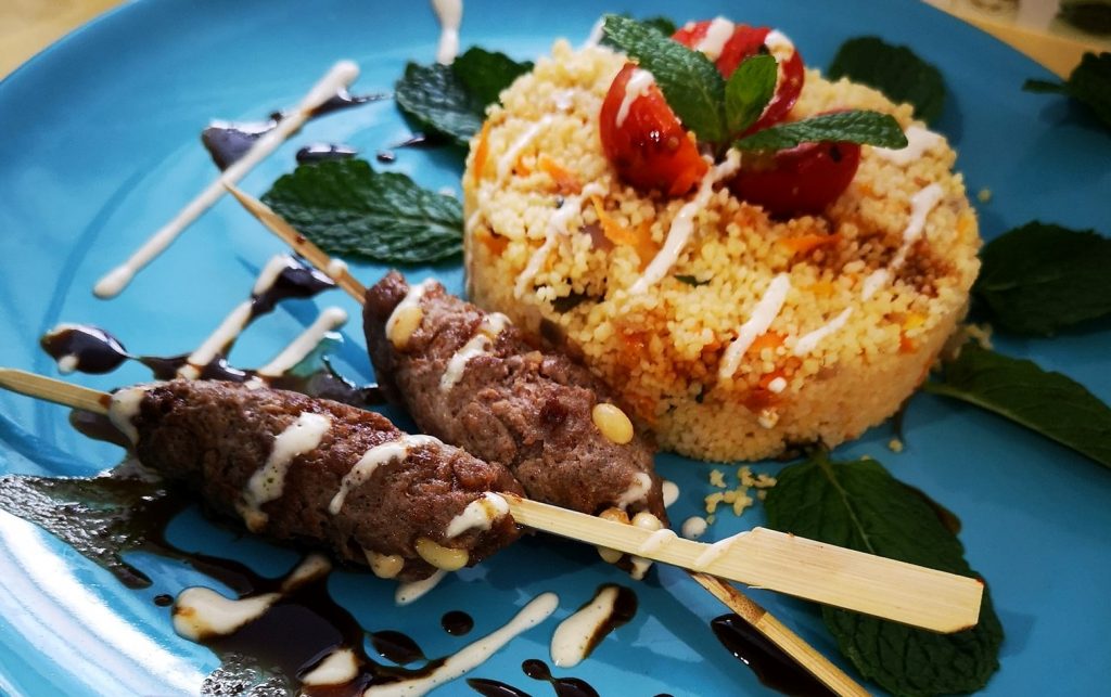 Kefta de retinto sobre cous cous presentado por el bar Los Hermanitos.