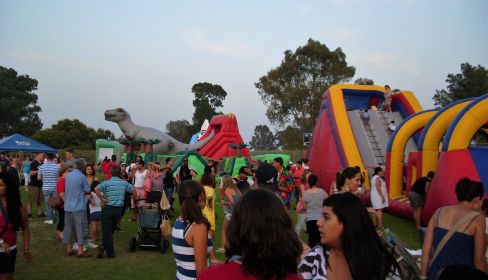 La ansiedad con la que uno llega al 4 de julio la va a apagando la sobredosis de pan de hamburguesa y perrito con la que, si te descuidas, puedes llegar engolliparte. Si uno va con niños, la siguiente etapa pasa por el cuidado césped del campo de béisbol, donde destacan por su tamaño y colores los gigantescos castillos hinchables, las camas elásticas y las pequeñas tiendas de manualidades y pinta caras.