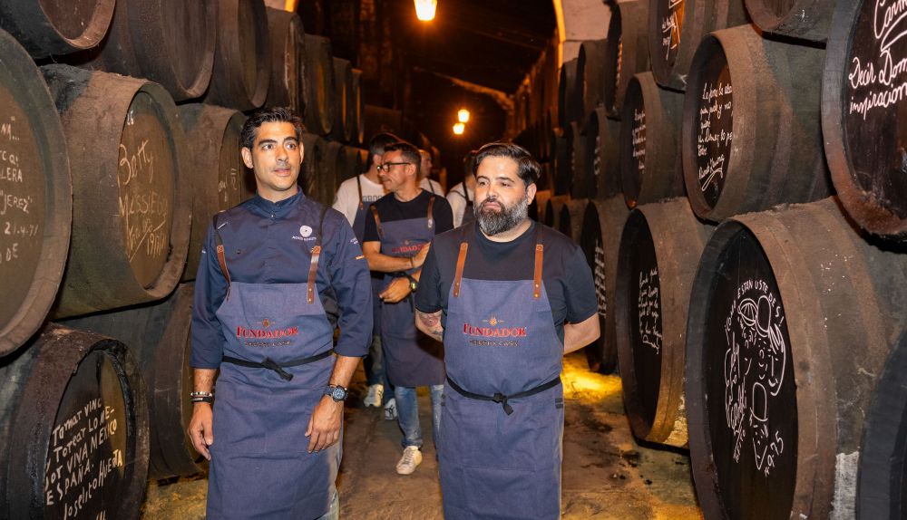 Pero antes de ocupar sus puestos tras los fogones de La Tapería, estos maestros tuvieron la ocasión de visitar la bodega y degustar algunos de los tesoros líquidos que alberga, como la gama de brandy Fundador Supremo. Conocieron de primera mano, además, el mágico proceso de elaboración del brandy, con la sutileza que aportan las valiosas Sherry Cask, las grandes botas de madera de roble americano de las que Fundador posee una colección única y sobre las que pudieron estampar su firma, tal como manda la tradición.