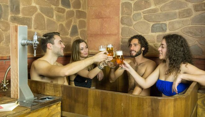 La experiencia completa e inolvidable que vivirán los clientes comienza en una barrica de madera de iroko, con jacuzzi, donde sumergidos alcanzarán una máxima relajación, beneficiándose al mismo tiempo de los componentes de la cerveza en la piel y degustando una cerveza servida muy fría, haciendo de esto una experiencia inolvidable para todos los sentidos. La sauna de cerveza abre los poros para la que impregnación de los componentes sea aún mayor. Un sueño hecho realidad para muchos. El recorrido finaliza en la zona relax, donde el cliente envuelto en una gran toalla se relaja en una cama de cebada, fabricada en exclusiva para Beer Spa, consiguiendo con ello un doble propósito, beneficiarse de los componentes de la cerveza y relajarse por completo de cuerpo y mente. Además entre los servicios se ofrece la posibilidad al cliente de contratar tratamientos spa combinados con cosmética elaborada a base de cerveza.