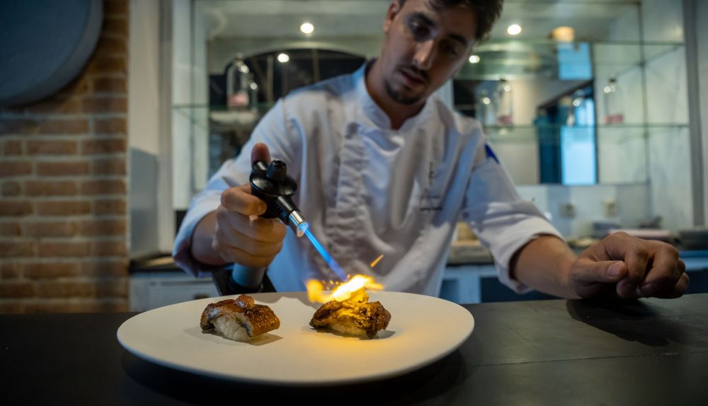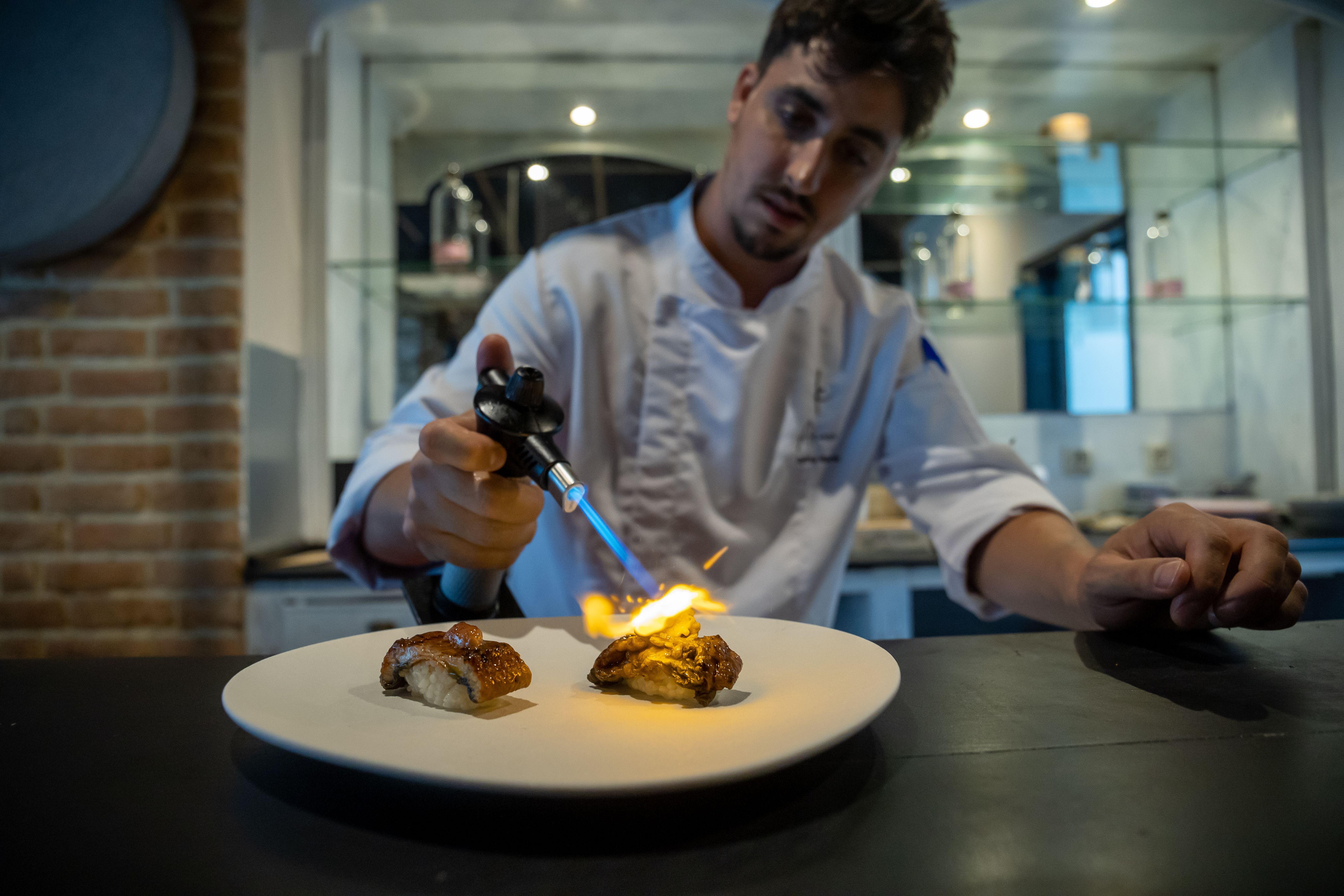 Hasta abrir su propia aventura hostelera, Iván estuvo en varios hoteles y restaurantes en la costa mallorquina. Pero ha sido transportista desde muy joven. "El encuentro con Jaime significó empezar a darle otra vez vueltas a las cosas y ver a lo que realmente me quiero dedicar", expone. A su lado, Jaime monta un nigiri de anguila con cacao 80%, un poco de foie fresco y ralladura de limón. "Siete gramos por once-doce de proteínas, aproximadamente. Es la proporción justa para que una cosa no invada a la otra, ni el arroz al pescado, ni viceversa", explica sobre todos esos bocaditos que, en general, todo el mundo llama sushi, pero que en realidad aluden a numerosas formas de comer y presentar la estrella gastronómica de Japón. Y, ojo, aconseja: "Si el nigiri está bien hecho no hace falta soja, salvo si la pides".