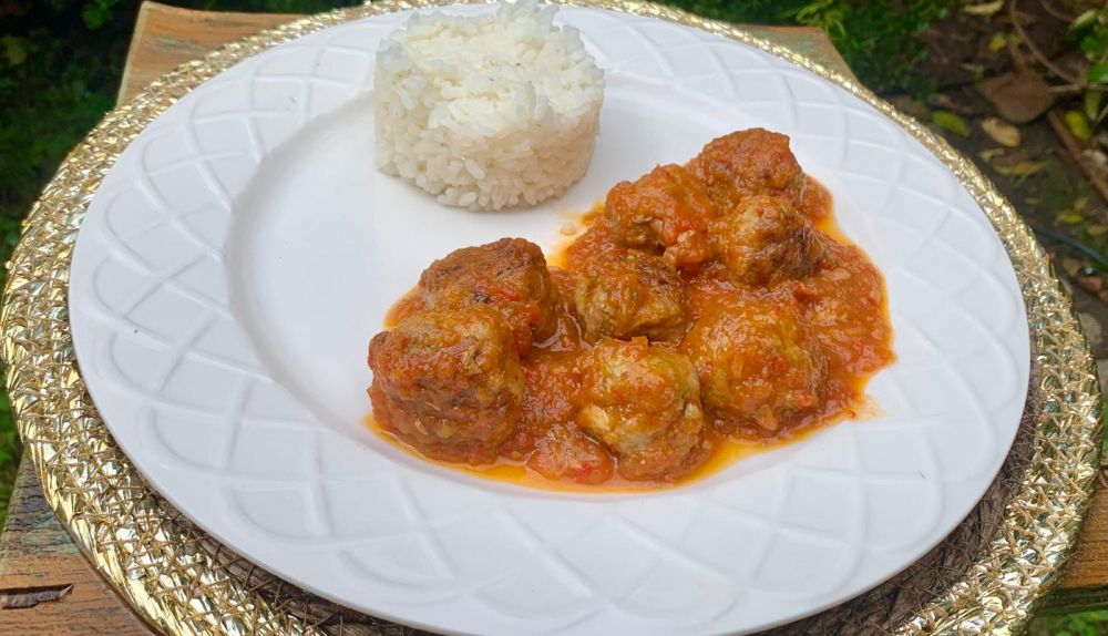- En una fuente agregamos la salsa de tomate y encima colocamos las albóndigas. Y listos para servir a la mesa y disfrutar, que están riquísimas.