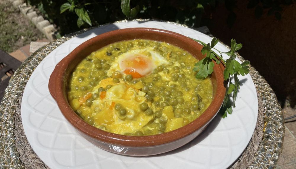 En cuanto a los ingredientes para elaborar esta receta, hemos conseguido guisantes de Rota, que son únicos, en la frutería de Rafa en el Mercado Norte de Rota y nos han encantado. También hemos usado las patatas de la huerta regenerativa de nuestro querido amigo Paco Blasco de Alma de Tomate y el vino ecológico de la Bodega Finca la Pintora de nuestro también querido amigo José Carlos Ferris. La combinación perfecta de estos tres ingredientes locales que hacen que esta receta sea deliciosa.