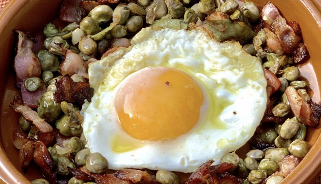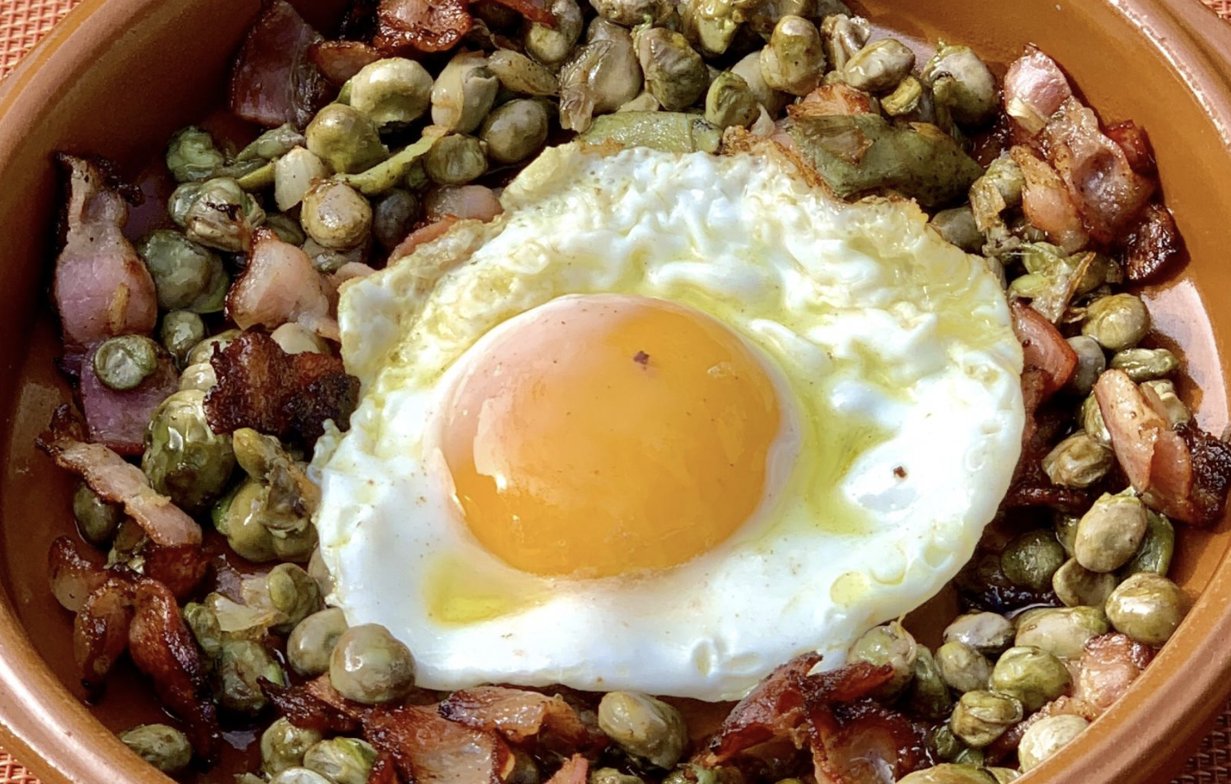 Otra manera es freír el huevo en una sartén aparte y luego se lo añadimos a la cazuelita de habas cocinadas y también queda muy rico