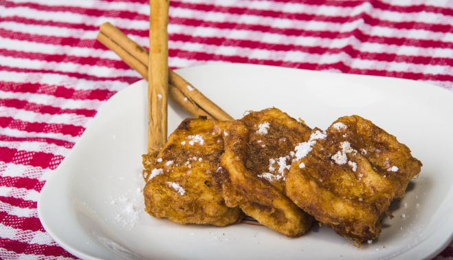Los freímos bien por todos lados, y al sacarlos los pasamos por una mezcla de abundante azúcar y canela en polvo.