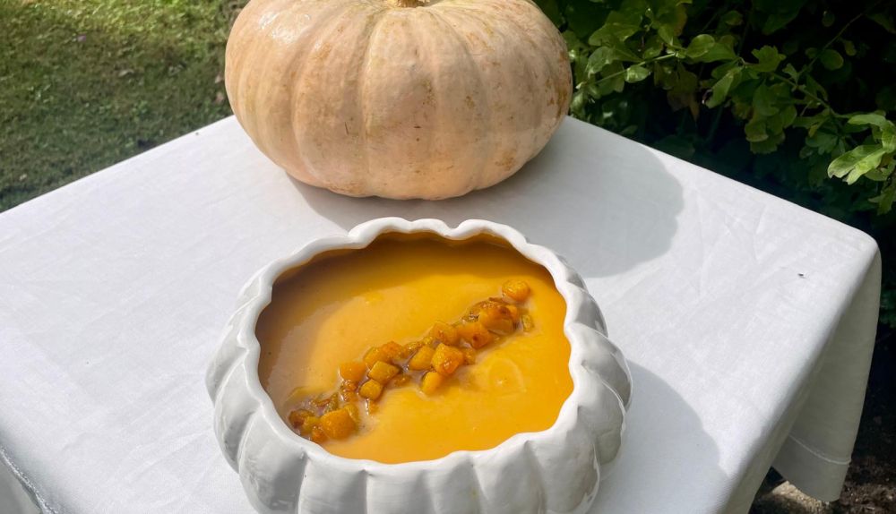 - Emplatamos en un bol y decoramos con la guarnición de daditos de calabaza sofritos al curry. Ya veréis qué rico está y que bien os va a sentar.