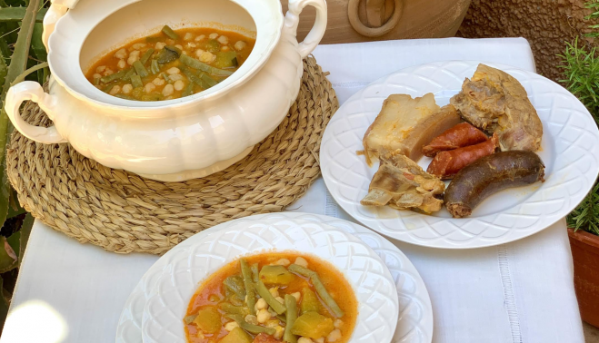 Antes de que entre el calor de verdad, y para rendir homenaje a nuestra ciudad, Rota, hemos querido cocinar y compartir este guiso tan roteño y tan gaditano a la vez, el cocido roteño, cocinado con calabaza y judías verdes, que está riquísimo.