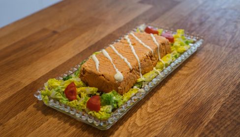 Dejamos enfriar en la nevera, desmoldamos y decoramos, al gusto, con una ligera mayonesa casera.