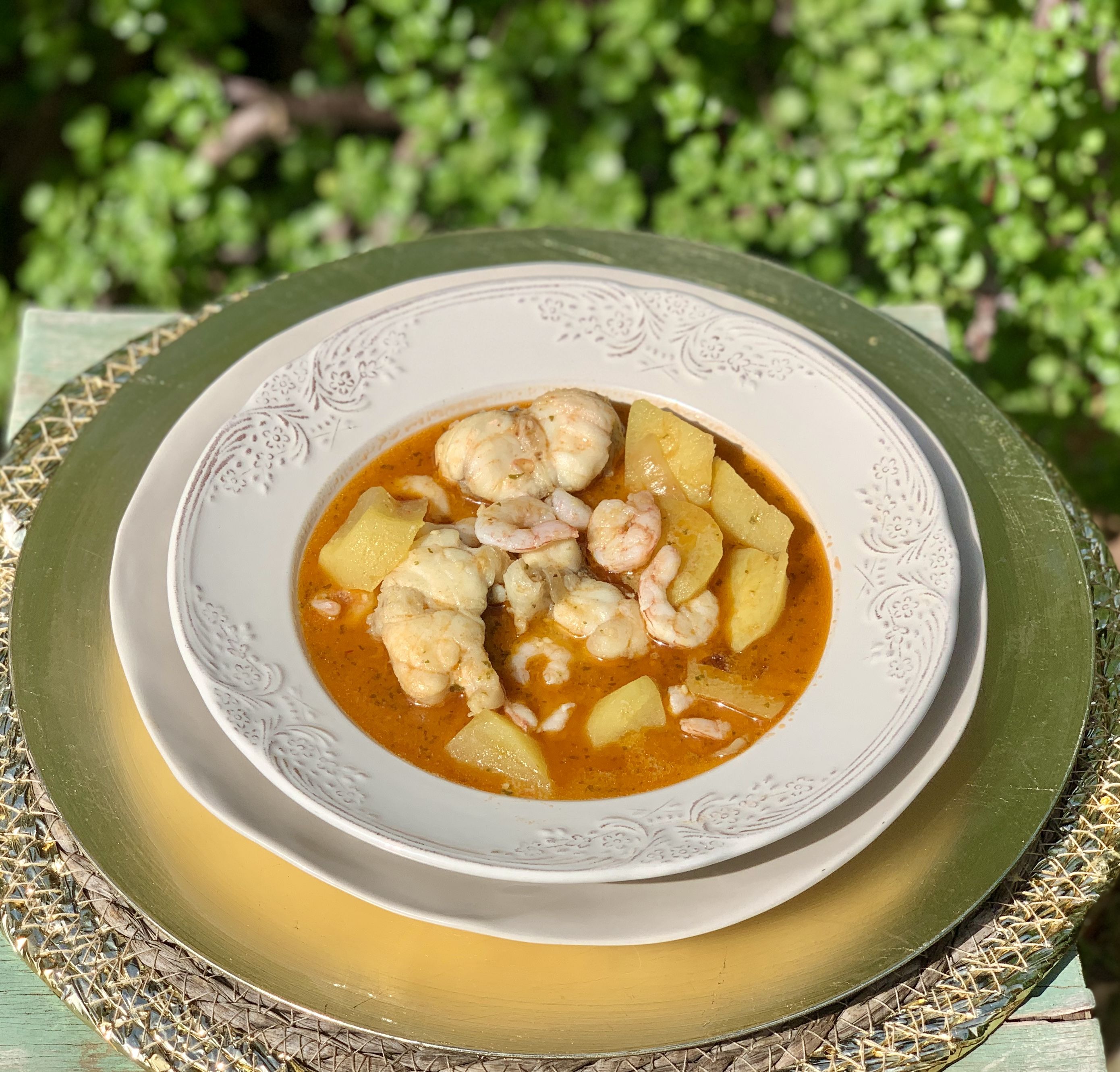 ⦿ En una cazuela u olla baja agregamos el pescado cortado a rodajas y el sofrito triturado y dejamos cocinar durante 15 minutos a fuego medio. Si vemos que el guiso está demasiado espeso, le añadimos agua para aligerar la salsa.