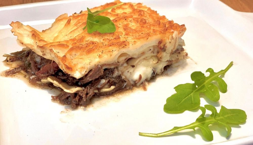 Nuestra madre Toti cocinaba las carnes de su establecimiento como la carrillada en salsa, la lengua… Y mis hermanas Rosi, Pepi y yo seguimos cocinando las recetas de mi madre y en concreto esta receta que es más moderna como la lasaña de carrillera en salsa, que está riquísima”.