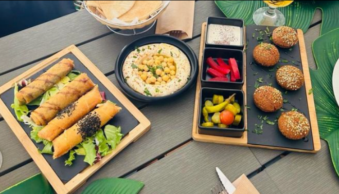 Entre las propuestas de su carta destacan el kibbeh, una fritura compuesta con trigo bulgur, carne picada y especias, y el falafel, un clásico de la cocina mediterránea. No hay que perderse tampoco el hummus, su shawarma y el fatteh de gambas, un plato elaborado con garbanzos, pan de pita, yogur y especias, entre otros ingredientes.