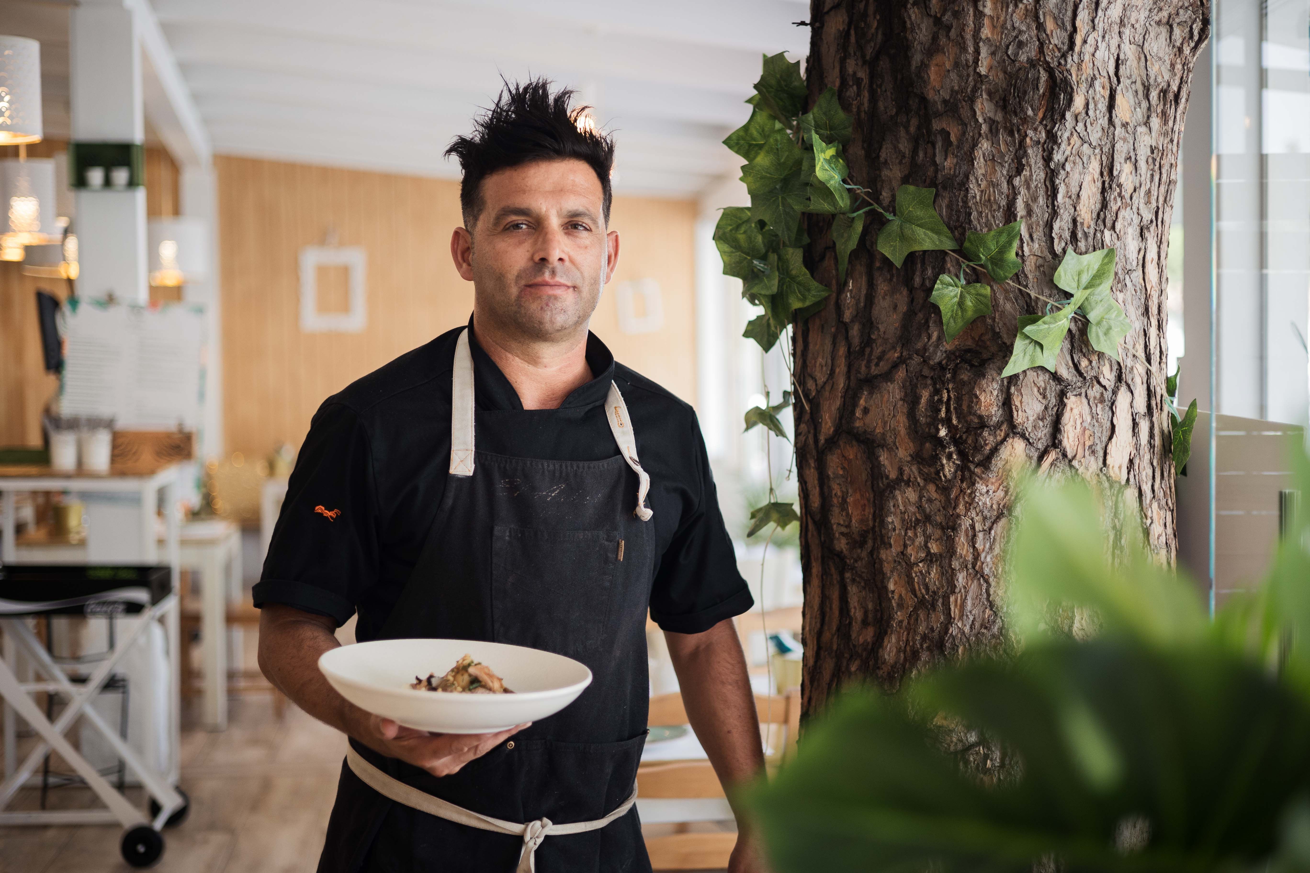 “Con 16 años dejé de estudiar y empecé con ellos a piñón, como cocinero y como camarero”, explica. Cuando cumplió 19 años decidió estudiar cocina en Cádiz y, después, volvió con su familia donde terminó de formarse hasta convertirse en el jefe de cocina. “Allí he aprendido mucho, empezó mi camino”, dice.