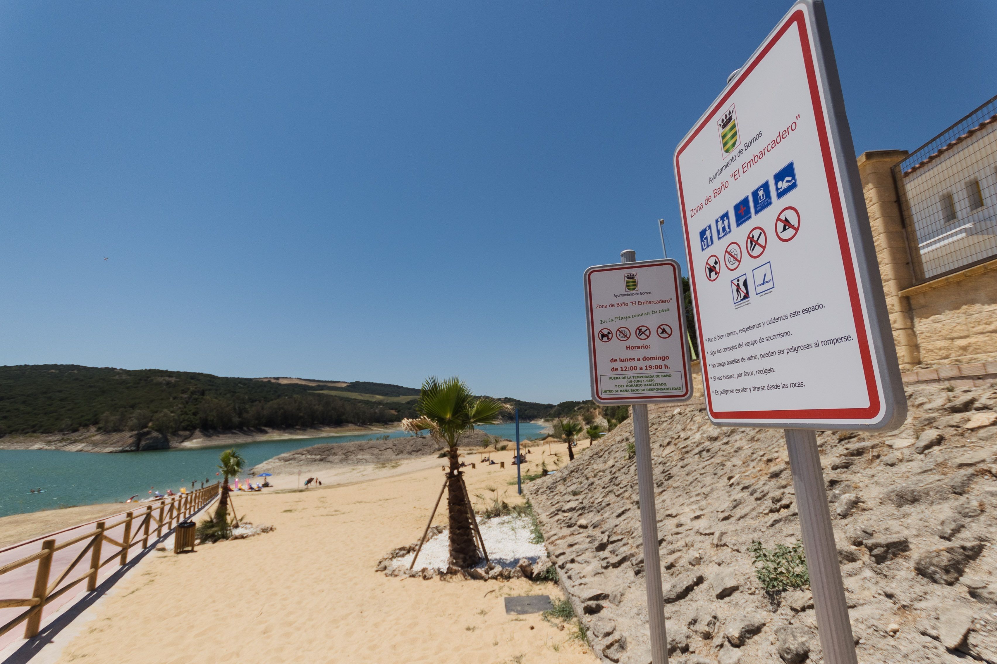 Donde antes había piedras y suciedad, ahora hay muchos metros de arena, sombrillas, toallas y neveras, sobre todo los fines de semana del inicio de un verano muy prometedor en Bornos, que estrena playita. Más de 3.000 metros cuadrados de espacio y 600 metros de baño que vienen a complementar la oferta de turismo de interior de la provincia durante los meses estivales.