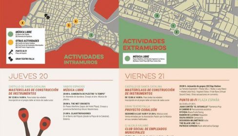 La programación, en la que colaboran diversas instituciones y asociaciones gaditanas, comenzará este jueves, 20 de junio, con un masterclass de construcción de instrumentos para todas las edades en el Castillo de Santa Catalina de 12.00 a 14.00 horas. Esta misma masterclass se repetirá a la misma hora el viernes y el sábado.