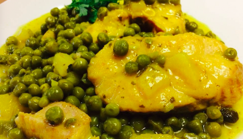 Esta semana cocinamos para vosotros un guiso muy gaditano en amarillo, el cazón en amarillo con sus guisantitos.